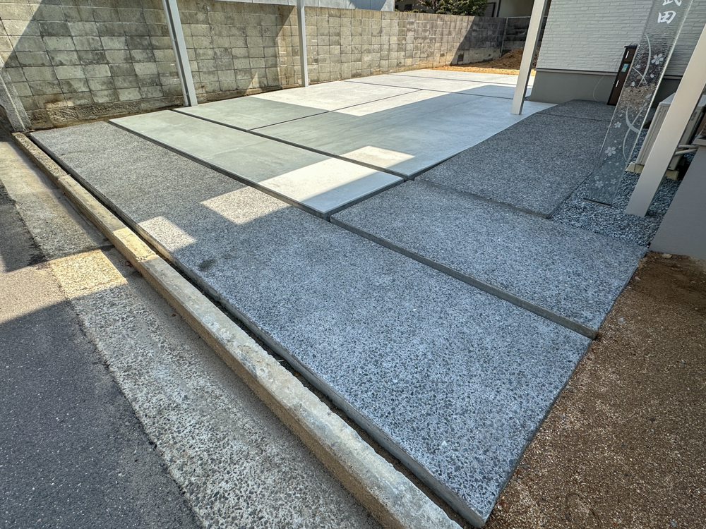 直線的でシンプルなデザインのコンクリート土間に、